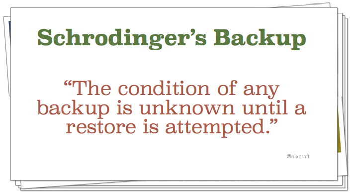 Hence “are you doing restores?” is a better question over “are you doing backups?”.